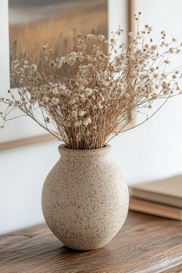 - El truco: Busca unas ramas de eucalipto, de olivo o incluso unas ramas secas bonitas y ponlas en un jarrón de cristal alto. Aportan frescura y una sensación de «casa viva» que combina de maravilla con la luz de la tarde y una vela encendida.